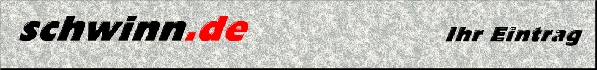 Eintragungsbedingungen private Homepages Wenn Sie Schwinn heißen und eine private Homepage betreiben oder per eMail erreichbar sind, so nehmen wir Ihren Eintrag gerne in das Verzeichnis auf. Entweder muß sich beim Inhalt der Homepage alles um die Schwinns drehen oder die Seite muß von einem Schwinn gemacht sein. Wenn Sie Homepages zu verschiedenen Themen betreiben, so nehmen wir gerne mehrere Einträge vor. Für den Eintrag benötigen wir folgende Angaben: